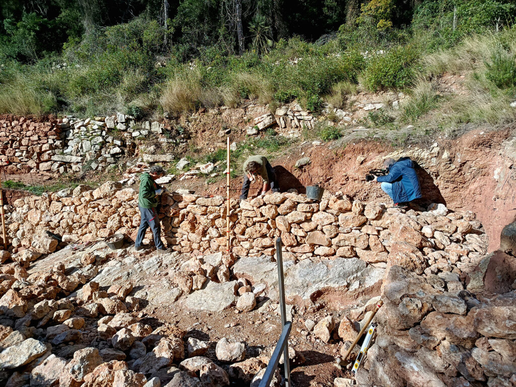 La reusenca Cèlia Mallafré és arquitecta per l’Escola Tècnica Superior d’Arquitectura de la Universitat Rovira i Virgili. Està especialitzada en patrimoni arquitectònic i investiga la pedra en sec des de l’any 2018. Tesi i doctorat versen sobre aquesta tècnica constructiva i no és casual que així sigui perquè n’ha covat un vincle molt estret des de petita: “El meu teló de fons han estat les Muntanyes de Prades, quan les veus saps que arribes a casa. Hi ha una connexió des de sempre amb l’entorn i el territori. Als pares sempre els havia agradat el camp tot i que no venien de pagès. Van comprar una finca a Vilaplana als anys 90. Ens agradava caminar i anar a la muntanya. No en teníem ni idea de com, però sempre que veiem un marge caigut, somiàvem a recuperar-lo. No tenia ús de raó que ja col·locava pedra”, diu entre somriures. “Hem caminat molt de Vilaplana a la Mussara on hi ha tot de pedres caigudes i construccions abandonades. Quan camines per les Tosques hi veus marges de pedra seca i et preguntes què hi fan ara enmig d’un bosc? Doncs és que abans eren camps de cultiu”, recorda. Té un interès personal i laboral gran per resseguir l’entorn i els elements que el componen i que es repeteixen. L’entrevistem per aprofundir-hi, per conèixer els beneficis “d’una tècnica constructiva que no deixa cap petjada i que el bosc engoleix quan s’abandona, que també serveix per afavorir la biodiversitat i és especialment útil en un context d’emergència climàtica”. Insisteix, per altra banda, que tant important com conèixer la tècnica és conèixer la gent del lloc, entrar-hi en contacte: “Lo divertit és identificar la diferència i la riquesa”.